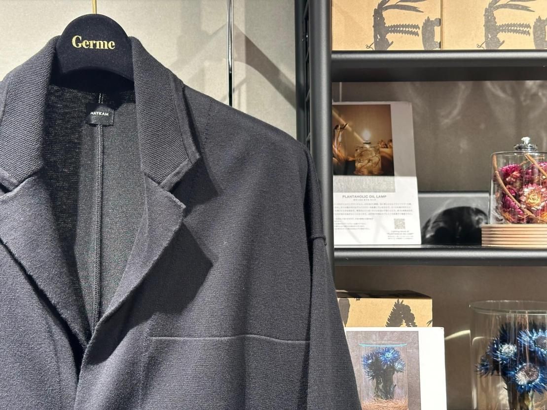1ボタンのラペルジャケットなので、カッチリしすぎず、カーディガン感覚で羽織れる優れたアイテムです。